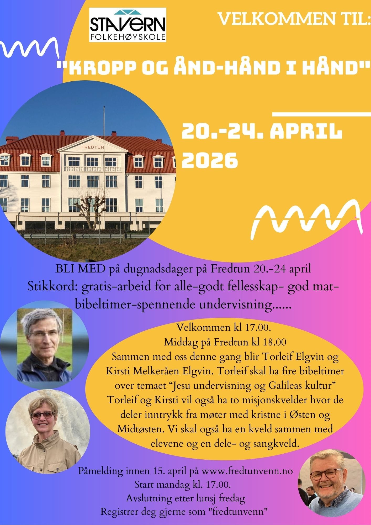 Vi ønsker igjen velkommen til dugnadsuka «Kropp og Ånd, hånd i hånd»